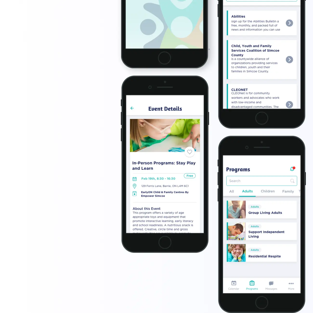 247Labs built a mobile app that provided users with easy access to Empower Simcoe’s services, including housing, health, and educational resources. The app included a community event calendar, service listings, and push notifications to keep users informed of important updates. The app was integrated with Empower Simcoe’s existing database, ensuring that users received real-time information and could easily find services near them.
